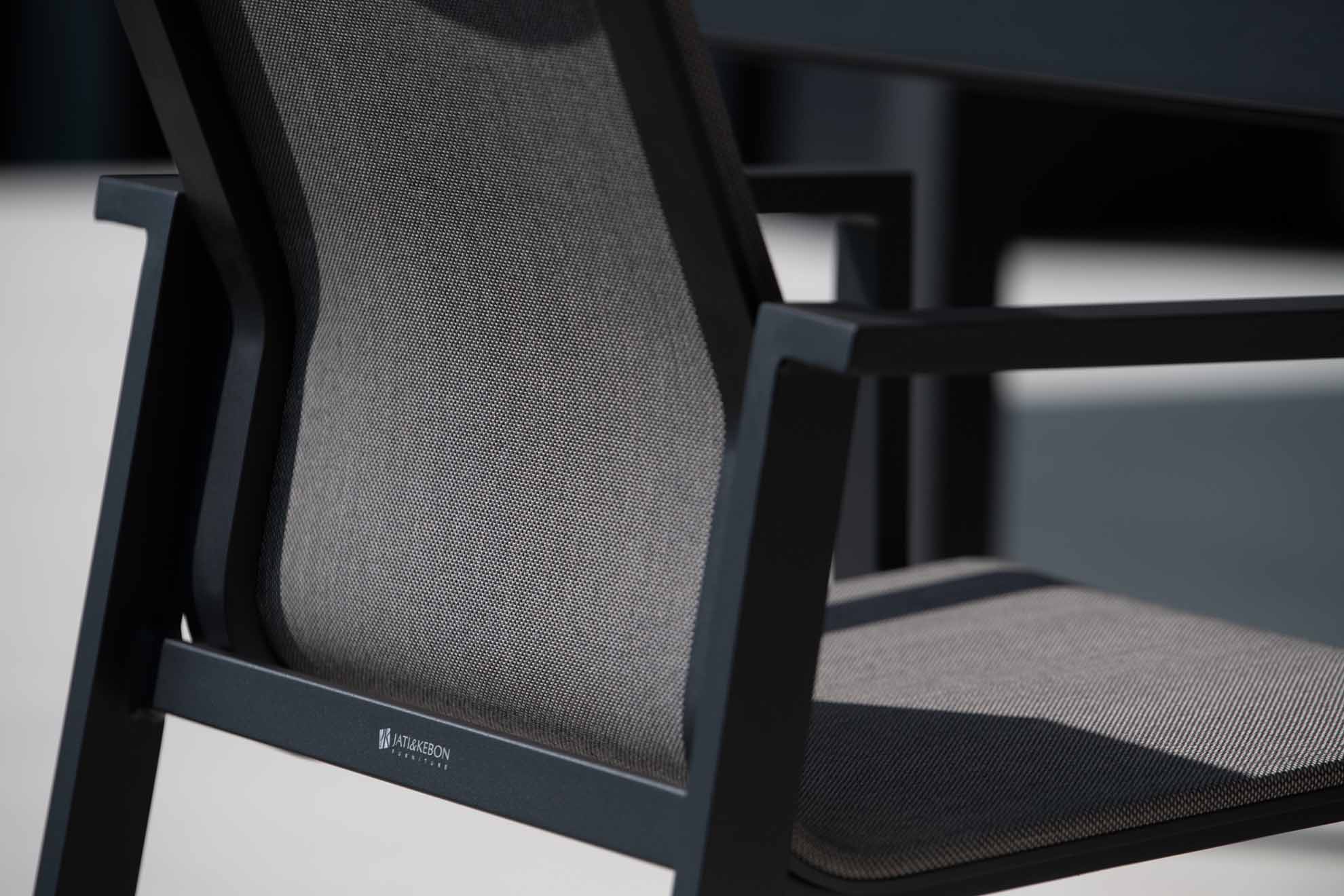 Der robuste Beja Gartensessel von Jati & Kebon besteht aus einem hochwertigen Aluminiumgestell mit Pulverbeschichtung und einer Bespannung aus Jatex-Gewebe. Die Armlehnen aus Teakholz sind ein visuelles sowie haptisches Highlight, das den eleganten Look des Stuhls noch abrundet. Armlehnen aus Holz sorgen nicht nur für ein angenehmes, natürliches Sitzgefühl sondern werden auch bei starker Sonneneinstrahlung nicht heiß. Für bequemes und entspanntes Sitzen sorgt auch die ergonomisch geformte und leicht geneigte Rückenlehne. Die Bespannung aus Jatex-Gewebe ist robust und langlebig und auch ohne Kissen sehr bequem. Der Beja Stapelsessel ist dank hochwertiger Materialien und penibler Verarbeitung absolut wetterfest und ganzjährig einsatzbereit. Bis zu sechs Beja Sessel können ineinander gestapelt werden.