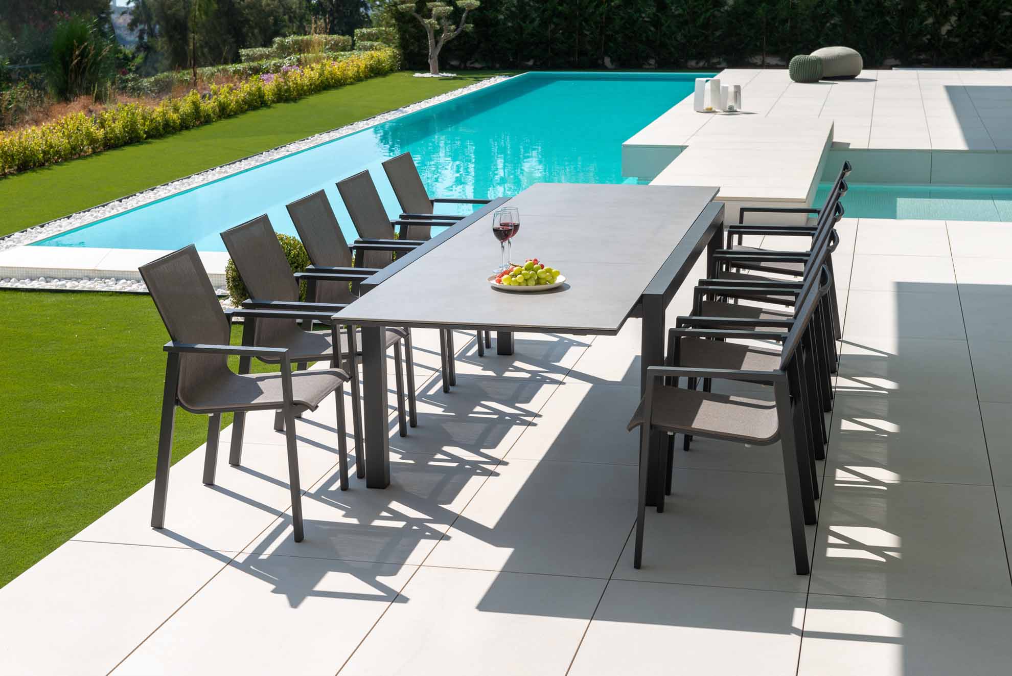 Gartenmöbel aus Aluminium sind geradezu ideal für den Einsatz im Freien geeignet. Das geringe Gewicht, die Wetterbeständigkeit, sowie die außerordentliche Langlebigkeit machen Aluminium zur 1. Wahl bei Gartenmöbeln aus Metall. Damit das Material nicht „ausblüht“ sind unsere Aluminium-Gartenmöbel mit hochwertigen Pulverbeschichtungen versehen. Viele Artikel sind in verschiedenen Farben erhältlich. Fast alle Aluminium-Gartenmöbel aus unserem Sortiment werden in aufwendiger Handarbeit gefertigt. Die Schweißnähte werden geschliffen und poliert, sodass Verbindungen anmuten als wären sie „aus einem Guss“.